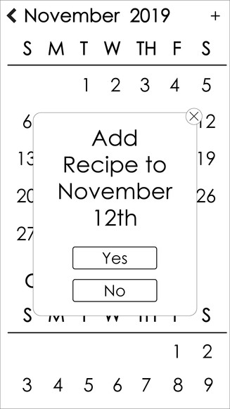 Recipe calendar chart for days the user would like to cook on that works with their schedule.